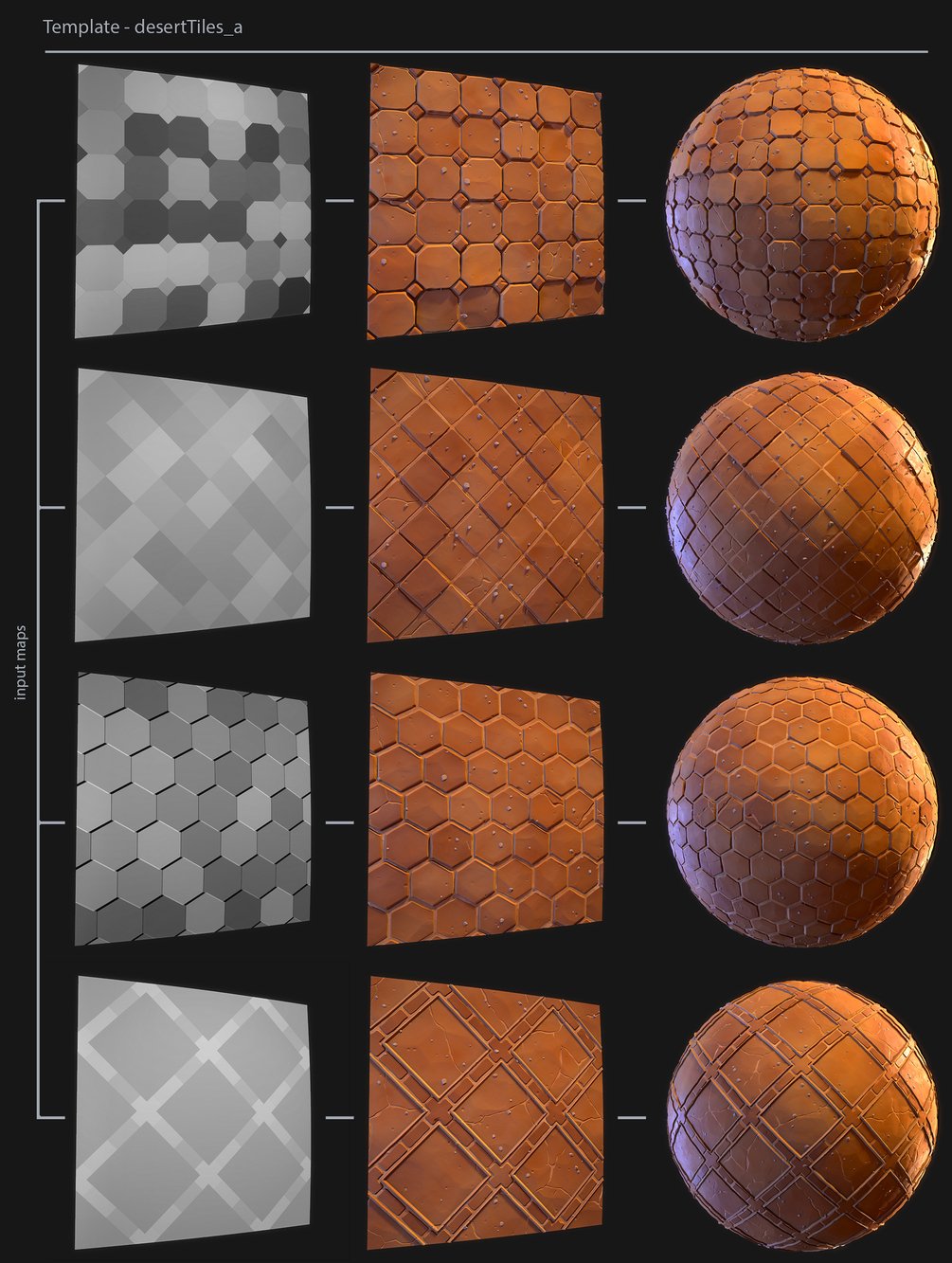 Note that this is designed to offer full creative flexibility to the artist, which means that there are many features and complexities involved in creating a fully finished texture. Moderate Substance Designer experience is recommended.